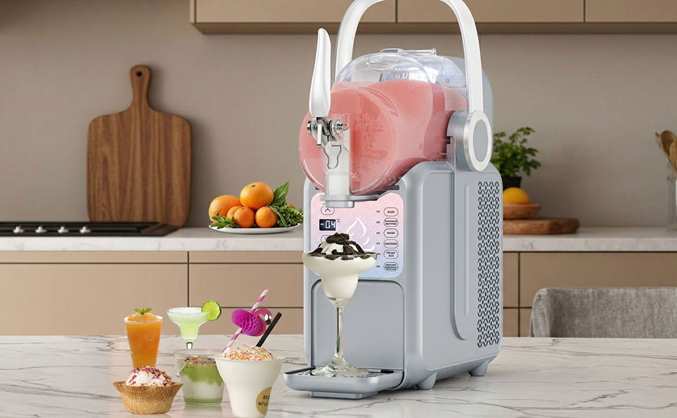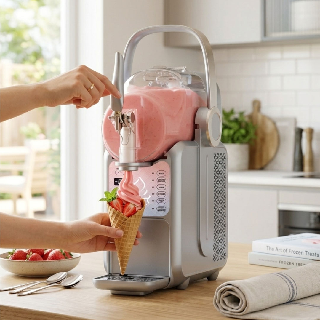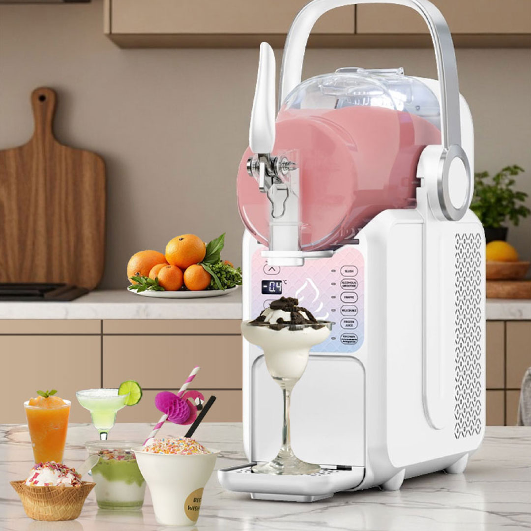 Elevate your home beverage game with the 6-in-1 Ice Cream and Frozen Drink Maker, a sleek and versatile powerhouse designed for the ultimate chilled experience. Whether you’re craving a velvety ice cream, a refreshing alcoholic slush, or a café-style frappe, this all-in-one appliance delivers professional-grade results at the touch of a button. Featuring a dedicated digital interface with precision temperature controls, you can effortlessly switch between specialized modes for milkshakes, frozen juice, and smoothies. Its compact, modern design complete with a convenient carry handle and a high-performance cooling system ensures that every serving is perfectly textured, keeping your favorite summer treats consistent and crave-worthy from the first pour to the last.