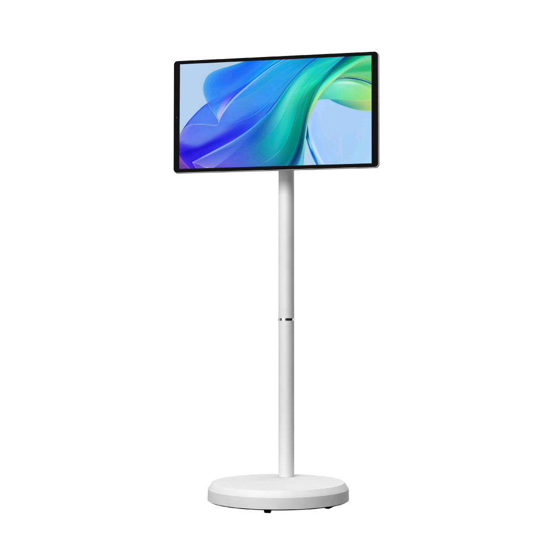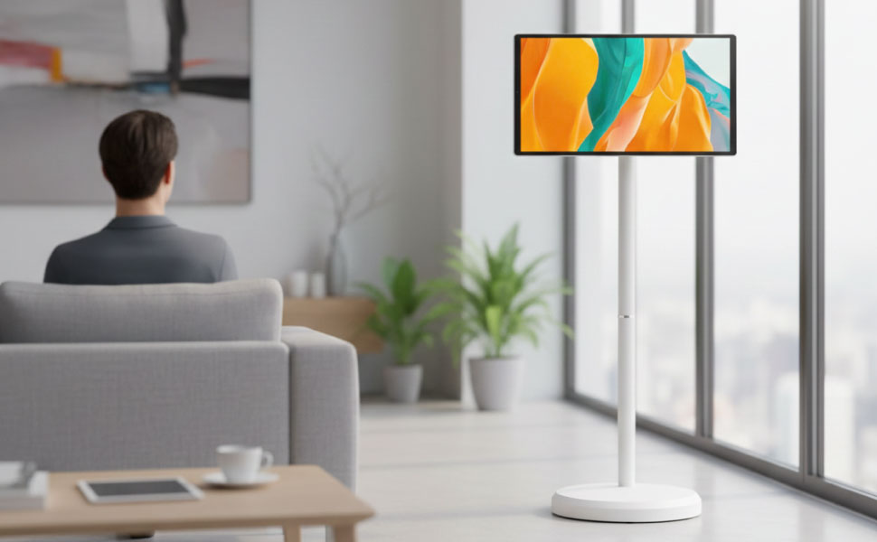 Ultimate Portability: Equipped with a 360° movable stand base on wheels, you can effortlessly glide your display from room to room. No more being tethered to a desk.