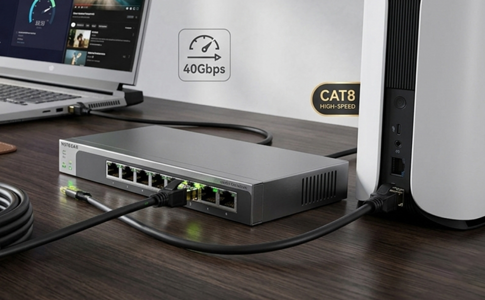 | 40 Gbps Velocity | Experience speeds up to 4x faster than Cat7, making lag a relic of the past. |