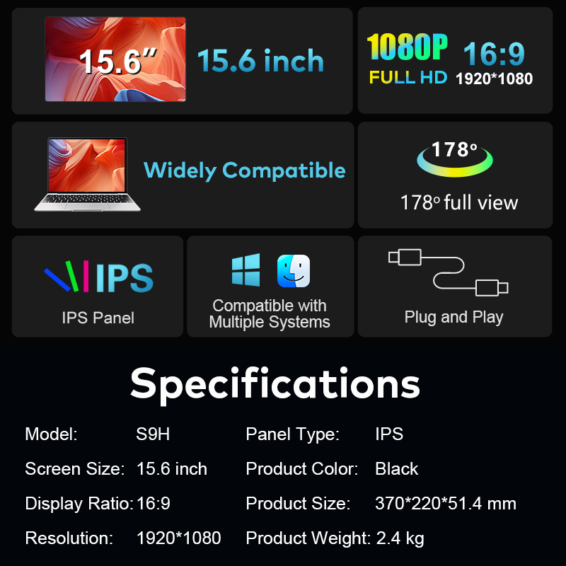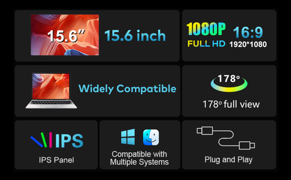 • Massive 15.6” Dual Extensions: Add two full-sized 1080P FHD screens to your laptop for a sprawling, immersive digital canvas.