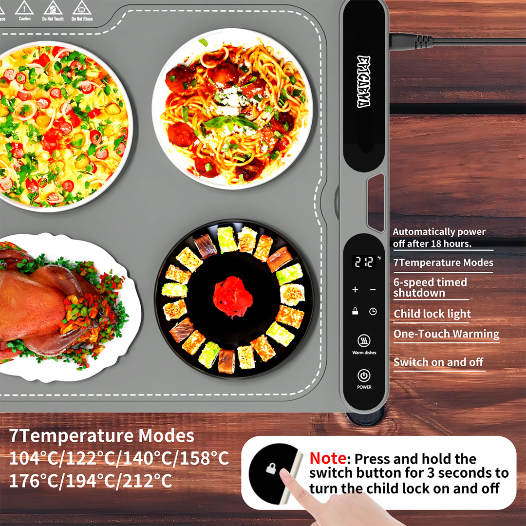 Transform the way you serve and entertain with our sleek, high-performance Food Heating Mat. Designed for the modern host, this versatile warmer keeps your culinary creations at the perfect serving temperature, ensuring that every bite is as delicious as when it first left the stove. Whether you are hosting an intimate dinner party, a large family buffet, or simply want to keep a meal warm for a late arrival, this mat provides consistent, even heat across its spacious surface. Its intuitive digital control panel allows for precise temperature adjustments, while the built-in safety features, including a child lock and automatic shut-off timer, offer complete peace of mind. With its ultra-slim, easy-to-clean design, this heating mat seamlessly blends into any kitchen decor, combining sophisticated style with unparalleled functionality for a stress-free dining experience.