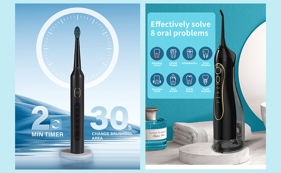 Elevate your daily oral hygiene routine with the T5+F5 Oral Irrigator and Electric Toothbrush Combo, a comprehensive care solution designed for a professional-grade clean at home. This all-in-one set combines advanced sonic brushing technology with powerful water flossing, ensuring every corner of your mouth is free from plaque and debris. Featuring multiple specialized cleaning modes and a diverse array of interchangeable nozzles, this system caters to all dental needs—from deep interdental cleaning to gentle gum massage. With its sleek, modern design and intuitive interface, the T5+F5 set doesn’t just improve your oral health; it brings a polished, dentist-quality aesthetic to your bathroom counter.