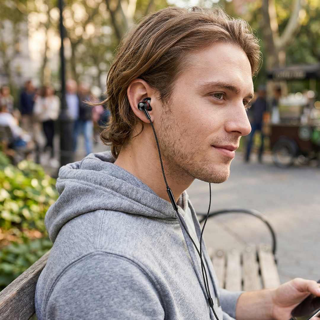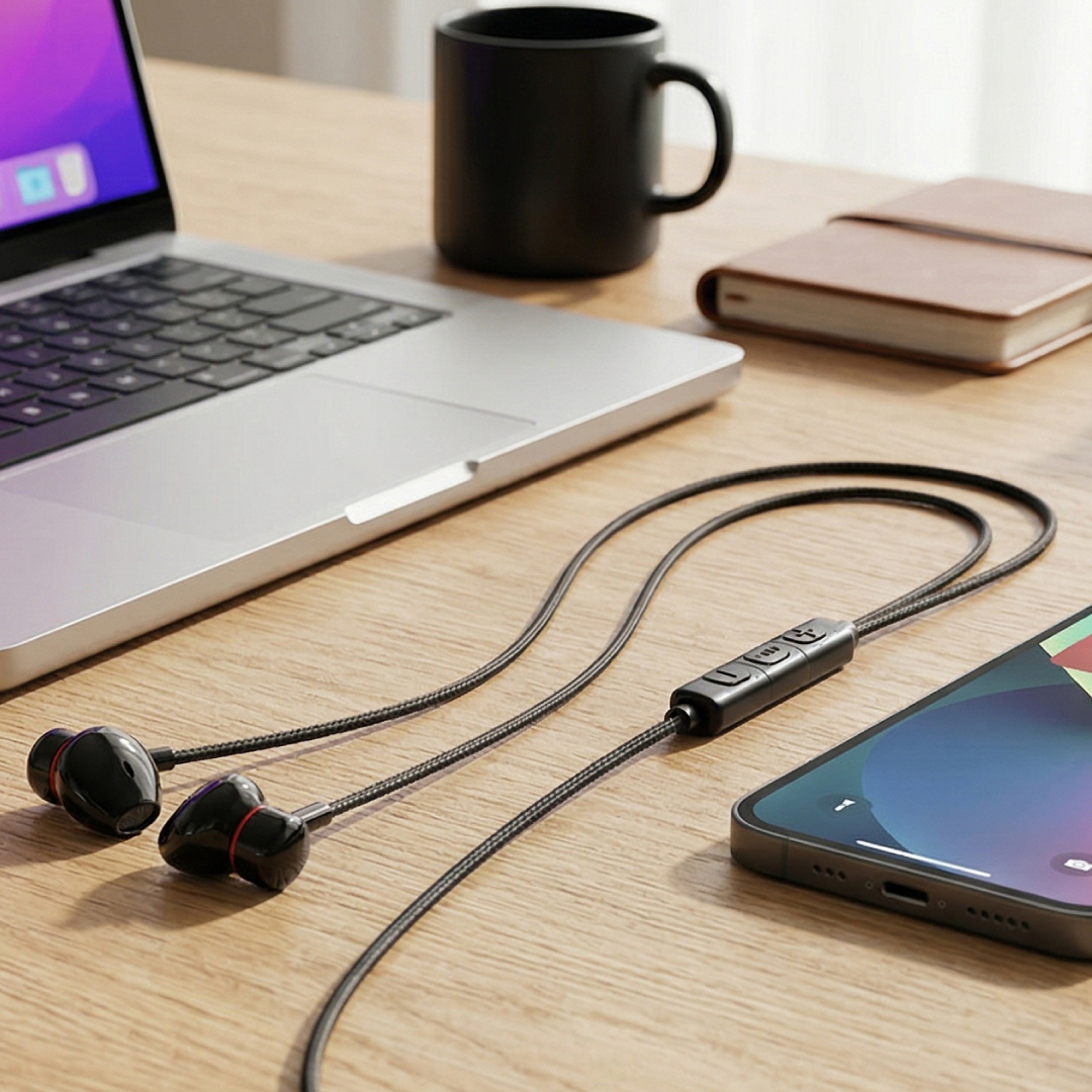 Enjoy immersive, high-definition audio with the SonicCore Hi-Fi USB-C Wired Earphones, engineered for superior clarity, comfort, and durability. With a 14 mm Hi-Fi stereo driver and braided tangle-free cable, these earphones combine crystal-clear sound with rugged reliability — perfect for music, movies, gaming, and calls.