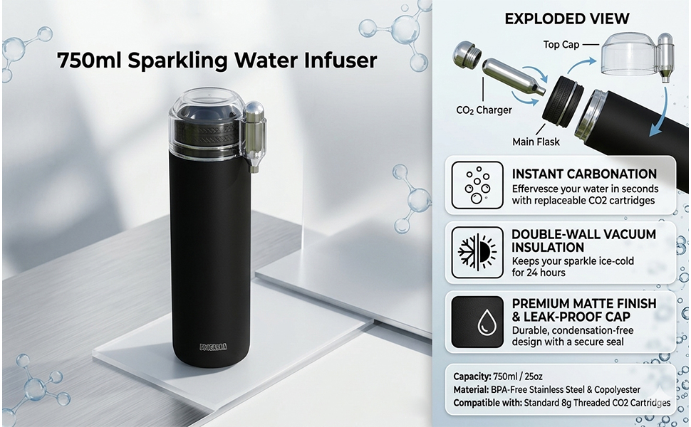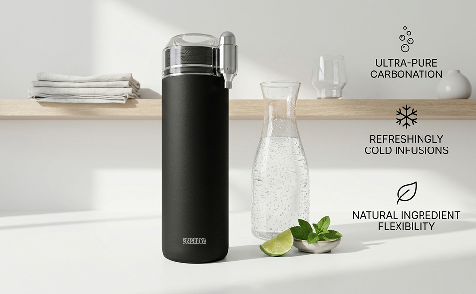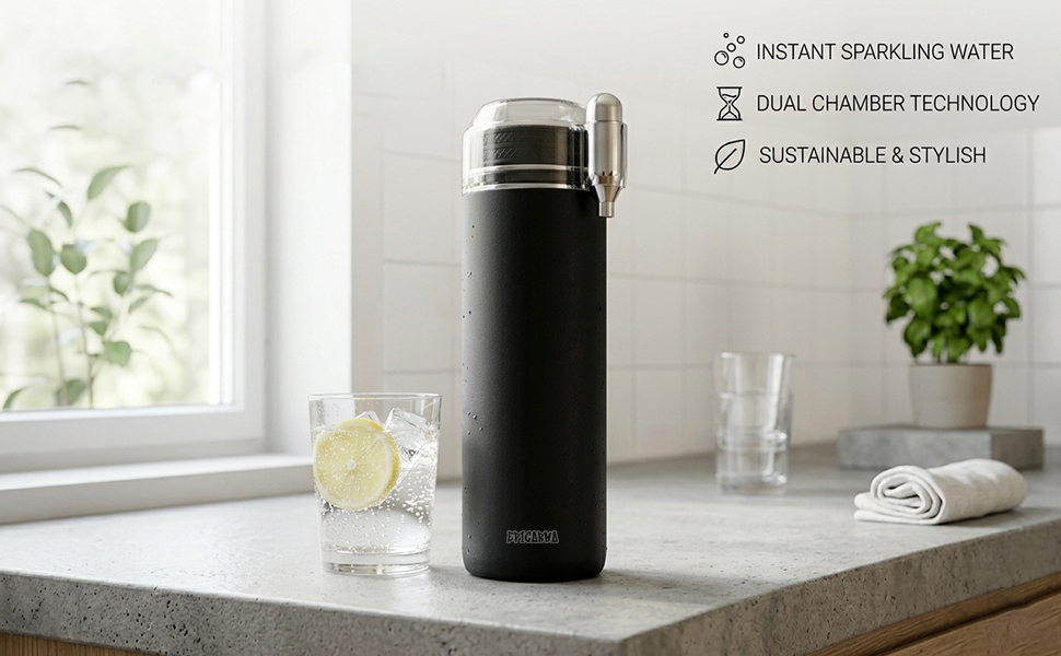 Premium Food-Grade Construction – Made with high-quality, BPA-free and food-safe materials to ensure safe and healthy drinking. The durable design maintains purity and preserves the natural taste of your sparkling water.